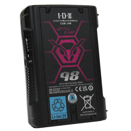 Présentation du IDX CUE-J98 V-Mount (95Wh) – Batterie La IDX CUE-J98 V-Mount (95Wh) est une batterie V-Mount compacte conçue pour répondre