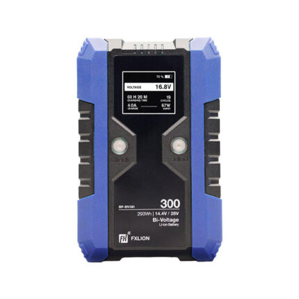 Présentation FxLion BP-BV300 (V-Mount) FxLion BP-BV300 (V-Mount) est une batterie bi-voltage de 293Wh. Elle se distingue des autres batteries du