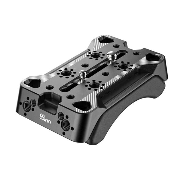 L’épaulière universelle 8Sinn est un produit essentiel pour une plate-forme d’épaule. C’est une base sur laquelle monter la plate-forme. Elle est composé de deux parties reliées entre elles par un aimant. La partie en aluminium qui se trouve sur le dessus offre diverses options de montage – plusieurs points de montage 1/4″ et points de montage 3/8″ avec des points de positionnement Arri. La partie inférieure souple est placée sur une épaule pour offrir une prise confortable du montage.