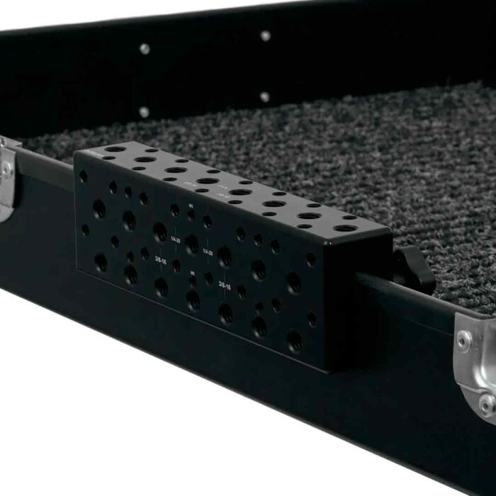 Les Accessory Rails d’Adicam sont des plaques en aluminium haute qualité conçues pour optimiser l’organisation et l’espace sur les chariots de tournage. Équipés de plusieurs trous filetés 1/4”-20 et 3/8”-16, ils permettent de fixer divers accessoires tels que des supports de batterie, câbles, outils et accessoires caméra.
