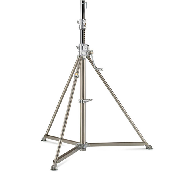 Le Avenger Super Wind Up 40 est un pied lumière robuste qui supporte jusqu’à 80 kg de charge et offre une hauteur de travail maximale de 386 cm. Il bénéficie d’une colonne à crémaillère en acier inoxydable, des jambes en acier inoxydable et des sections réglables en acier finition chrome. Il dispose de 3 sections dont 2 extensibles qui montent simultanément de 4.4 cm à chaque tour de manivelle. La fixation au sommet du pied est un connecteur Junior femelle 1″1/8 (28 mm) avec une attache intégrée pour installer une sangle ou un hauban. Un câble de sécurité est présent et garantit que les sections se rétractent de façon simultanée. Le Avenger B6040X est également équipé d’une jambe de mise à niveau pour des ajustements rapides et précis.