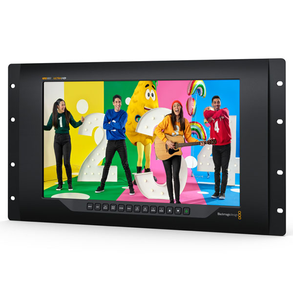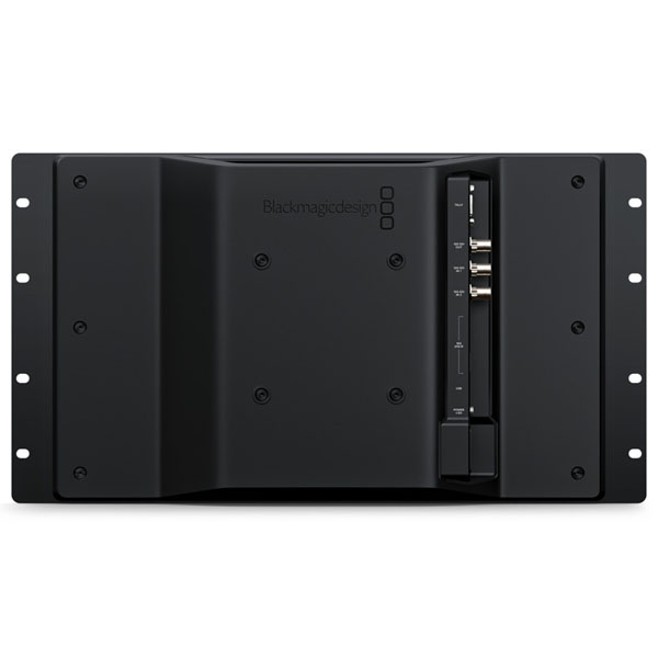 Le SmartView 4K comprend un design en métal usiné extrêmement robuste avec des lignes nettes et épurées. Son boîtier anodisé en noir profond est magnifique installé dans un rack avec d’autres équipements Blackmagic Design. De plus, le SmartView 4K ne fait que quelques pouces de profondeur. Comme les moniteurs sont souvent installés en haut des racks, son design fin offre beaucoup d’espace à l’arrière de l’appareil pour mieux ventiler le rack et garder le matériel au frais. En bas du SmartView 4K, vous trouverez plusieurs boutons légèrement inclinés pour faciliter sa prise en main. Toutes les connexions vidéo ainsi qu’un pas de vis VESA se trouvent à l’arrière du moniteur.