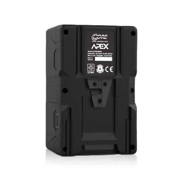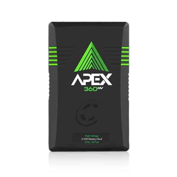 Core SWX Apex 360 HV (Helix V-Mount) est une batterie Lithium haute capacité 29.6v et 367Wh, conçue pour répondre enfin au besoin d’une solution de batterie idéale pour l’éclairage LED haute puissance. La batterie est capable de produire jusqu’à 12 A en continu. La haute tension d’Apex 360 HV fournit encore plus de puissance avec des exigences de courant plus faibles, permettant un fonctionnement plus efficace pour des lumières LED qui acceptent des tensions plus élevées. La jauge de puissance LED vous permet de savoir quand la batterie charge ou se décharge. De plus, l’option Apex HV utilise le jeu de broches du système Helix breveté de Core, de sorte que placer par inadvertance le bloc haute tension sur un équipement 14v n’est pas préoccupant. Le boîtier extérieur d’Apex est composé en polycarbonate renforcé.