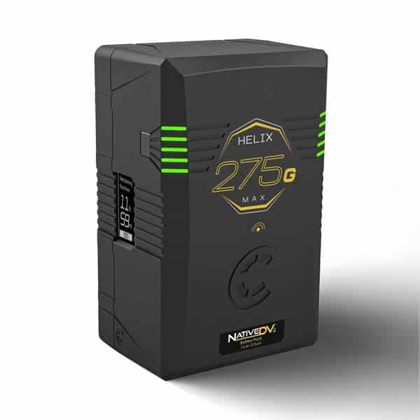 Core SWX Helix Max 275 (G-Mount) vient compléter la gamme de batterie Helix Max avec une plus grande capacité, très utile pour l’Arri Alexa 35 et la RED Raptor XL, qui ont besoin de beaucoup d’énergie. Son design est différent des modèles mini Helix Max (98wh et 150wh), mais ils ont toujours les mêmes caractéristiques, y compris l’écran LCD polyvalent (maintenant sur le côté), RFID, p-tap, USB, maintenant une jauge LED enveloppante, et la communication avec la caméra.