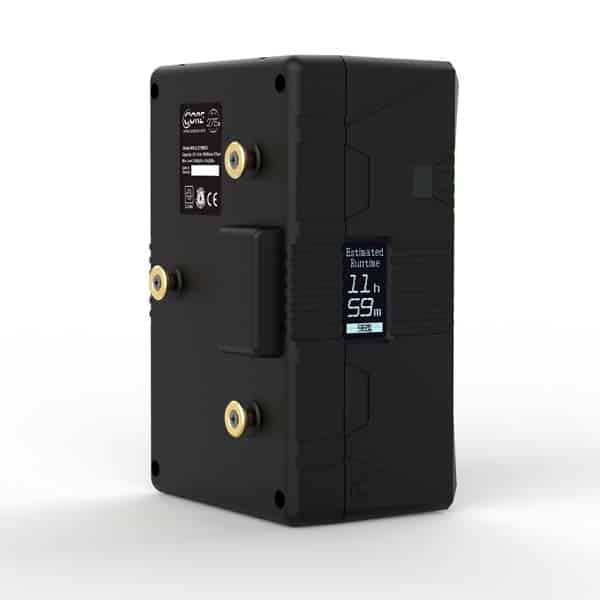 Les batteries Core SWX Helix Max 275 et 360 sont équipés d’un écran LCD triphasé rétroéclairé, monté stratégiquement sur le côté du pack, qui fournit à l’opérateur de la caméra des informations sur l’autonomie de la batterie et l’état de charge. Cet écran LCD avancé est conçu pour afficher une estimation de l’autonomie lorsque la batterie n’est pas utilisée et l’autonomie réelle calculée lorsqu’elle est utilisée, en échantillonnant la charge toutes les 3 secondes. Lorsqu’il est placé sur un chargeur, l’écran LCD pivote de 90 degrés pour afficher le temps de charge restant jusqu’à ce que la batterie soit complètement chargée. En outre, l’écran LCD affiche un graphique à barres, la durée d’utilisation en heures et en minutes et le pourcentage de capacité restante, ce qui permet aux cinéastes et aux professionnels de l’éclairage de prendre des décisions éclairées sur leur stratégie de gestion de l’énergie.