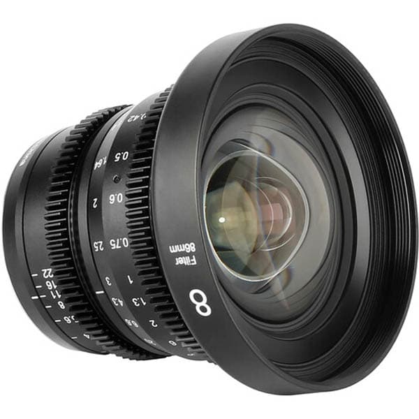 Des repères d’échelle sont fournis en pieds et en mètres, et une rotation de mise au point de 260° permet un réglage manuel de la mise au point avec précision. Avec une distance focale de 8mm, cet objectif cinéma a un angle de vue horizontal de 96° et une distance de mise au point minimale de 25cm.