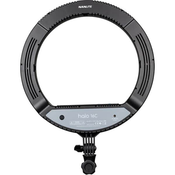 Le Nanlite Halo 16C est un anneau LED bicolore RGBWW 16 “de NanLite présente un facteur de forme distinctif et une température de couleur variable de 2700 à 6500K pour s’adapter à d’autres luminaires, conditions de lumière ambiante ou simplement pour une expression créative. Il est également réglable à partir de 0 à 100%. Ces réglages peuvent être effectués par un astucieux pavé tactile, accessible par l’avant et l’arrière.