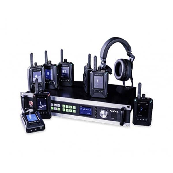 Le NAYA Système intercom UHF 4 postes avec fonction tally est un système Intercom avec transmission full-duplex 400-470 Mhz et jusqu’à 1000m de portée.