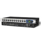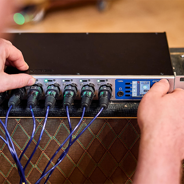 Les étages d’entrée micro sans PAD ont une plage de gain de 75 dB et acceptent des signaux allant jusqu’à +18 dBu. Côté convertisseur, le 12Mic brille par un rapport signal/bruit exceptionnel sur tous les canaux. Les douze connexions XLR en façade acceptent les signaux de niveau micro et ligne, tandis que les quatre premières connexions acceptent également les connecteurs TRS, avec une haute impédance (Hi-Z) commutable pour les instruments.
