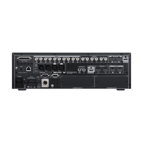 Equipé d’une entrée et d’une sortie HDMI avec support multi-format. Combinez librement des sources informatiques et vidéo et des sorties vers une large gamme d’écrans et de périphériques. Outre les dix entrées SD / HD-SDI, le V-1200HD dispose de quatre entrées HDMI. Six sorties SD / HD-SDI et deux sorties HDMI sont également fournies. Parmi celles-ci, les deux entrées et sorties HDMI offrent un support multi-format. Les sources informatiques avec des résolutions et des fréquences d’images variables sont prises en charge sans avoir besoin de convertisseurs vidéo. Le signal est transmis directement au processus 4: 4: 4, de sorte qu’il peut être restitué, sans modification, à la même résolution élevée. De plus, utiliser une carte d’extension XI disponible séparément avec un scaler intégré permet de mélanger les entrées et les sorties numériques et analogiques.