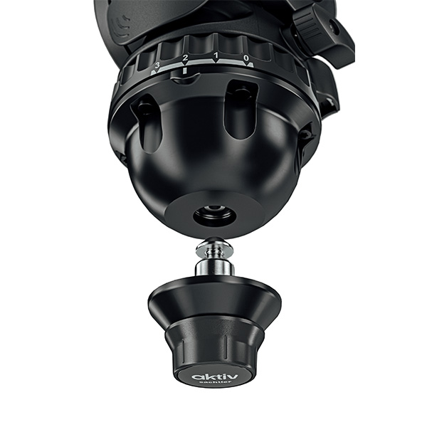 Polyvalente et maniable, la rotule aktiv se positionne et se verrouille en quelques secondes.