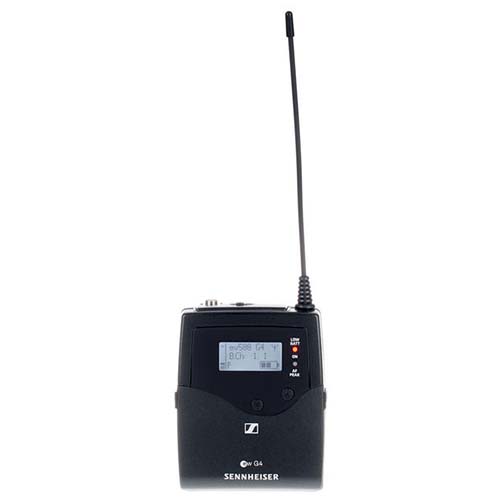 Le SK 500 G4-GW dispose d’un connecteur verrouillable de 3,5 mm avec un niveau d’entrée micro/ligne réglable pour accueillir le micro-cravate ou le casque compatible de votre choix, ou un câble adaptateur pour guitare et basse. Lorsque la fonction Sync du récepteur est activée, l’émetteur et le récepteur se connectent rapidement à la même fréquence via infrarouge. L’écran LCD rétroéclairé de l’émetteur affiche les informations essentielles, tandis que la fonction de sourdine programmable pratique peut être verrouillée pour éviter les changements accidentels pendant une performance.