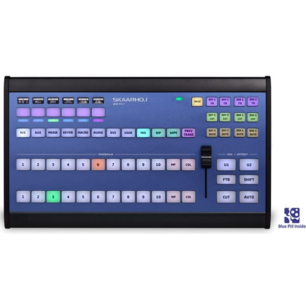 La SKAARHOJ Air Fly (ATEM) avec Blue Pill est une surface de contrôle qui vous offre un accès facilité aux fonctionnalités de votre système ATEM. Elle exécute le système d’exploitation open source UniSketch développé par SKAARHOJ, qui est programmable par l’utilisateur pour s’adapter à des flux de travail spécifiques. La technologie PoE simplifie la configuration en permettant aux signaux et à l’alimentation de circuler via un seul câble.