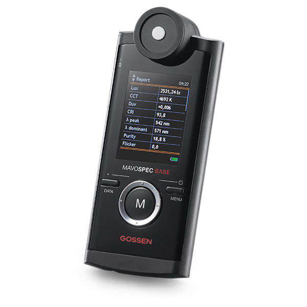 Mavospec Base a été conçu pour rendre la lumière très précise et simple à manipuler où et quand vous le désirez. Toutes les variables de mesure majeures pour la lumière comme l’éclairement lumineux, la température de couleur corrélée, indice de rendu des couleurs selon CIE 13.3 et IES TM-30-15, les coordonnées de chromaticité selon les différentes standards CIE, le scintillement, la répartition spectrale de puissance, les longueurs d’onde pic et dominante sont définies à partir du spectre mesuré et indiquées de manière compréhensible autant pour l’expert que l’amateur.