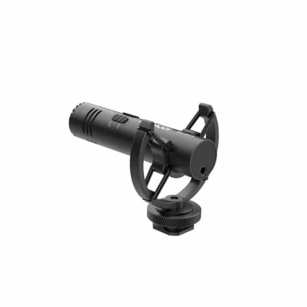 Le Synco Mic-M2S est un micro canon pour DSLR, conçu pour la prise de vue en extérieur. Son filtre coupe-bas de 100 Hz est facilement commutable pour réduire les bruits ambiants, son SNR est réglé à 76 dB pour restaurer autant de détails que possible. Sa construction métallique permet d’isoler les interférences RF sans ajouter de poids à la configuration. Il bénéficie d’une longue autonomie de 4 jours et convient parfaitement aux journalistes mobiles, aux speakers, aux vloggers et raux un-and-gun shooters.