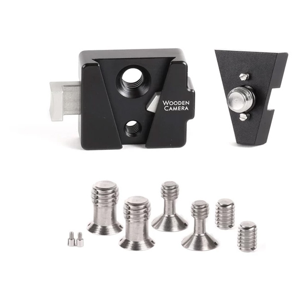 La station de base V-Lock et le kit de coin (support d’accessoire ARRI 3 / 8-16) est un ensemble à dégagement rapide basé sur le V-Lock ou le V-Dock standard. La partie de la station de base peut être fixé avec un vis de 1 / 4-20 ou 3 / 8-16. La vis de réglage peut également être installée pour empêcher la torsion et la station de base a le modèle de trou pour les broches de montage d’accessoires ARRI.