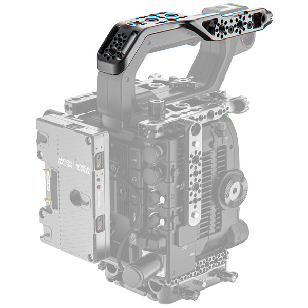 Le Top Handle Cheese Plate pour Canon EOS C400 est conçu de manière ergonomique pour s’adapter parfaitement à la poignée native de la caméra, offrant ainsi un maximum de confort. Cet accessoire se fixe directement sur la poignée de l’EOS C400 à l’aide d’une clé hexagonale de 3/16 et 3 mm. Il offre un espace supplémentaire pour les accessoires grâce à de multiples points de montage ¼”-20 et ⅜”-16 situés sur le dessus et sur les côtés. Un point de montage ⅜”-16 orienté vers l’avant permet de fixer des Rod Clamps, des Bolt-On Rods ou d’autres accessoires montés à l’avant. Le design personnalisé avec des découpes permet un accès facile au hot shoe de l’EOS C400 pour le montage du support anti-choc du microphone shotgun de la caméra.